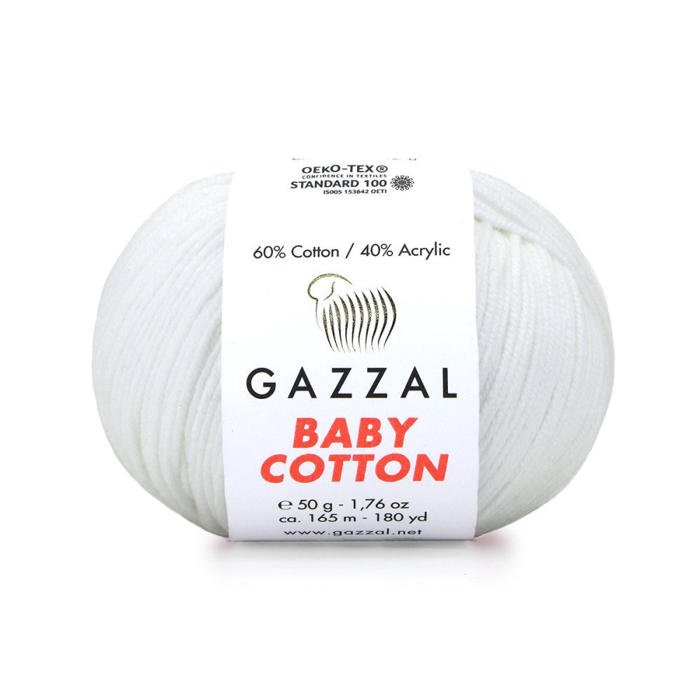 Gazzal Baby Cotton 3410 Ekru, pamuk ağırlıklı yapısı sayesinde yumuşak dokulu, nefes alabilen ve cilt dostu bir el örgü ipidir. %60 pamuk ve %40 akrilik karışımı sayesinde hem doğal hissiyat sunar hem de örgü sırasında kolay kullanım sağlar.